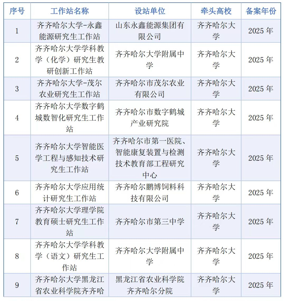 近日,黑龙江省教育厅公布了2025年度黑龙江省产教融合研究生工作站备案名单,sunbet申搏申报的“sunbet申搏官方网站数字鹤城数智化研究生工作站”等24个工作站成功获批。截至目前,sunbet申搏省级产教融合研究生工作站总量已达49个。