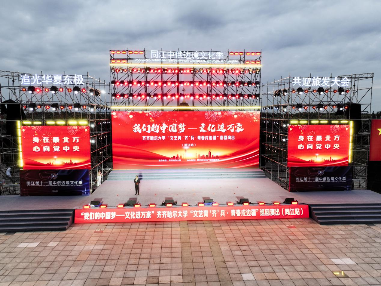 7月24日至31日,小分队沿黑龙江边境线,奔赴漠河、黑河、同江、抚远四地,深入边防哨所、少数民族村落、边境口岸、社区广场,为军民演出精心编排的文艺节目,用歌声和舞姿讲述红色故事、歌颂美好生活、传递党的温暖、致敬戍边精神,让文化成为连接边疆军民血脉的桥梁,一路串联起无数个温暖与感动的瞬间。