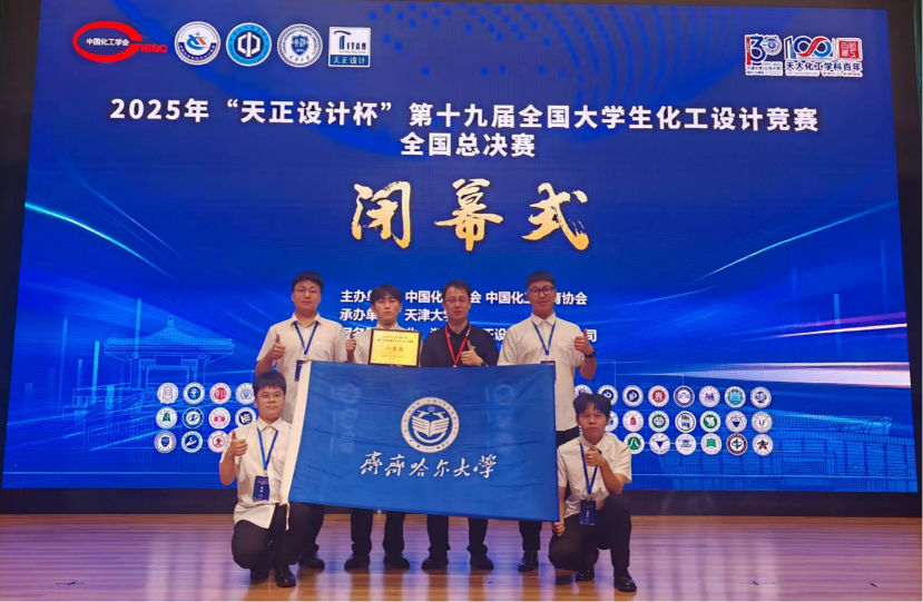 8月11日至17日,由中国化工学会、中国化工教育协会主办,天津大学承办的第十九届全国大学生化工设计竞赛全国总决赛顺利举办。在sunbet申搏化学与化学工程学院李金龙、邓庆芳、张宇、赵振龙、许广等教师的精心指导下,由化学工程与工艺专业王志鹏、谢展、李文彬、王诗勇、曹佳鑫5名本科生组成的“砜学未来”团队历时8个月的努力,经过多轮选拔,现场答辩等环节,最终荣获全国大学生化工设计竞赛全国一等奖的佳绩。