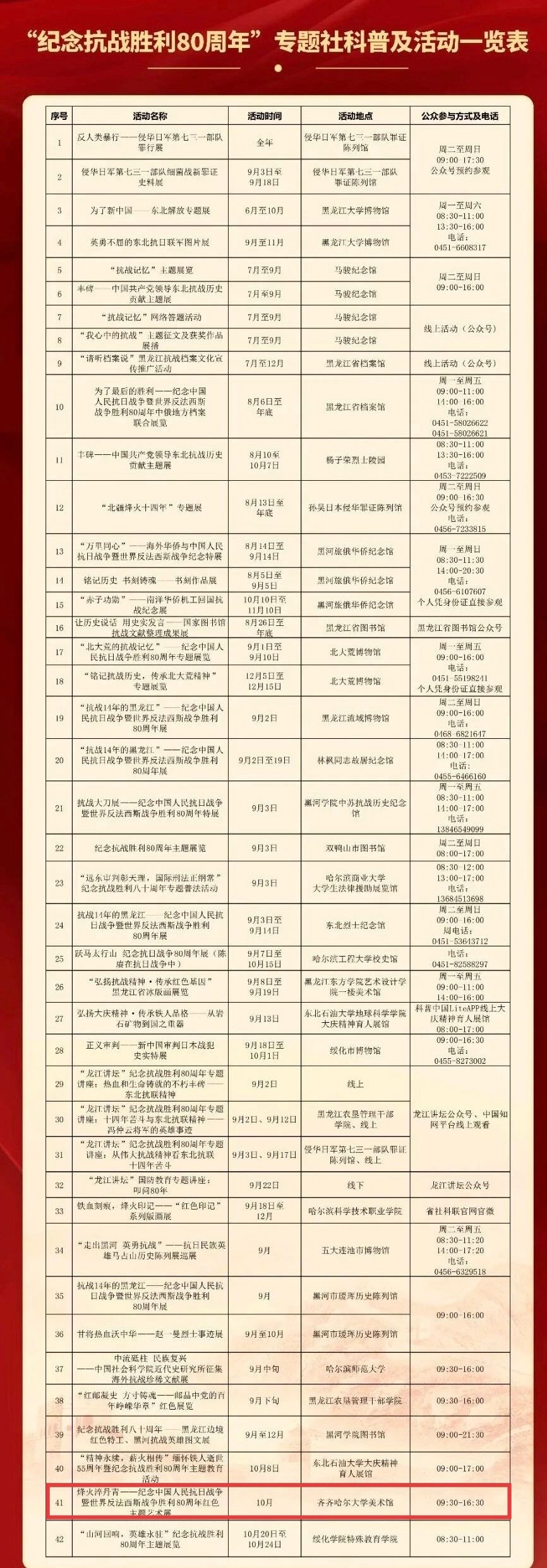 在中国人民抗日战争暨世界反法西斯战争胜利80周年之际,经黑龙江省社会科学界联合会评审与党组会议审议,sunbet申搏申报的“烽火淬丹青——纪念中国人民抗日战争暨世界反法西斯战争胜利80周年红色主题艺术展”项目,从全省征集的417项社科普及活动中脱颖而出,成功入选黑龙江省社科联主题社科普及活动推介项目。