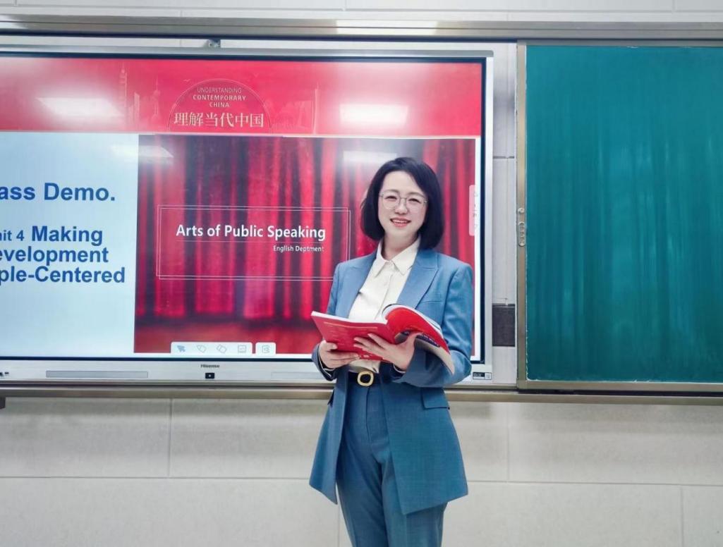在教学实践中,她紧扣英语学科特点,将“用外语讲好中国故事”融入课程各环节:承担7门本科与研究生核心课程,以《理解当代中国》系列教材引导学生用英语解读中国发展成就与文化内涵;依托国家级一流课程《英语演讲》推进“做中学、学中做”改革,通过案例品鉴、翻转实训激发学习主动性,同时设计跨文化传播项目,组织“中国文化周路演”、带领学生参与中国文化云社会实践等赛事,指导学生用英语创作研究报告与短视频,每学期评阅千余份作品优化表达,还牵头组织2022年12校联盟会议、加入教育部典型虚拟教研室,持续推广“外语+思政”教学方法。为深化教学创新与学科研究,她在外语教育、多模态话语分析领域发表论文近二十篇,其中国家级核心期刊8篇,出版专著1部,参编教材4部,含2部聚焦‘外语+思政’的创新型混合式教材,主持并参与各级各类教学科研项目10余项,这些成果为“用外语讲好中国故事”的育人实践提供了坚实理论支撑。其学科思政创新模式已在省内外多所高校推广,本人获评教育部典型虚拟教研室“学习标兵”,学生在“国才杯・理解当代中国大赛”等赛事中斩获黑龙江省特等奖、国家二等奖等荣誉,部分学生受邀作全国示范分享,中国文化云社会实践成果还被江西教育电视台专题报道,充分彰显英语专业“以语为桥、以文化人”的育人成效。