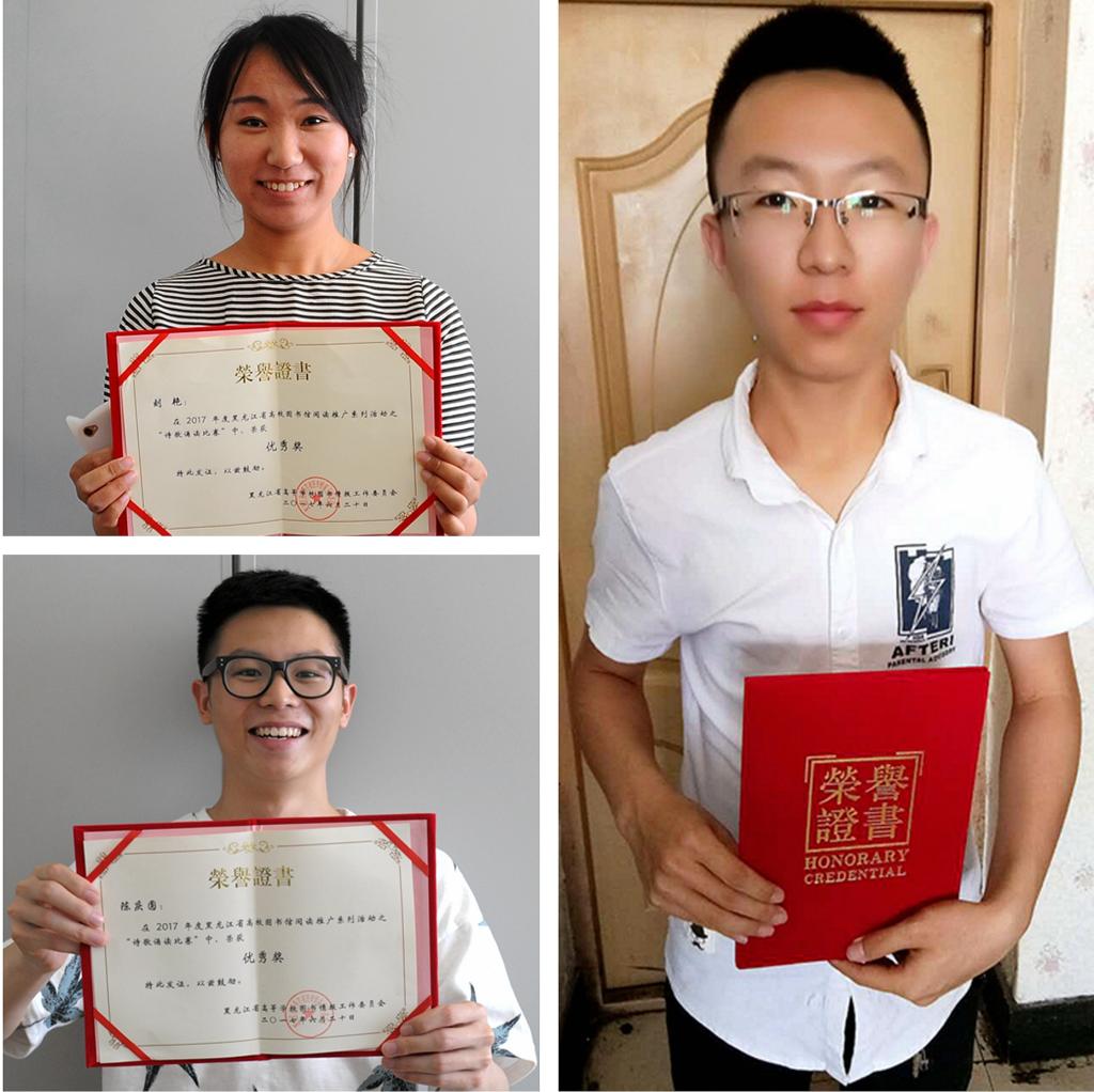 参赛选手声情并茂,饱含对阅读的喜爱和对诗歌的敬仰,深刻解读名家作品,深情演绎诗歌意境,使观众身临其境地感受读书的魅力、文字的优美、书香的陶醉、文化的盛宴。经过激烈角逐,sunbet申搏唐志强同学在“诗歌诵读比赛”中荣获三等奖,刘艳同学和陈庆圆同学在“诗歌诵读比赛”中荣获优秀奖。