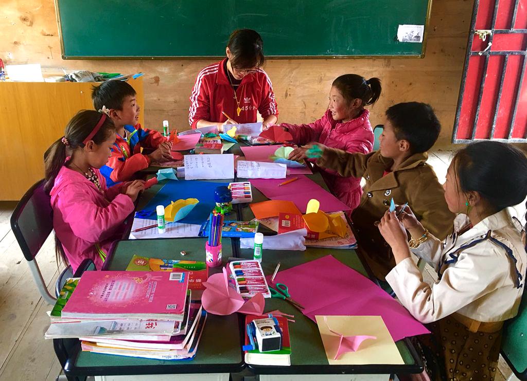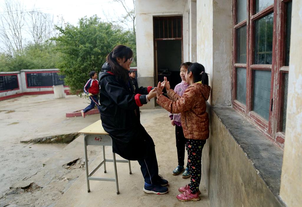 那时,孙思琦是三年级的班主任,有一个特别淘气的小男孩。初见“老师”们时,其他孩子都是带着好奇和喜悦的表情围着他们转,而小男孩却是怯怯地躲在门背后,从远处偷偷观望着这群来自大山外面的哥哥姐姐们。开展教学活动时,小男孩总是同她唱反调,惹得她火冒三丈,却又在课后的谈话中一边流泪一边撅着嘴的模样让她哭笑不得。这时她便明白了,这个孩子只是太缺乏爱,他渴望得到关注,只是不知道以什么样的方式去获取罢了。