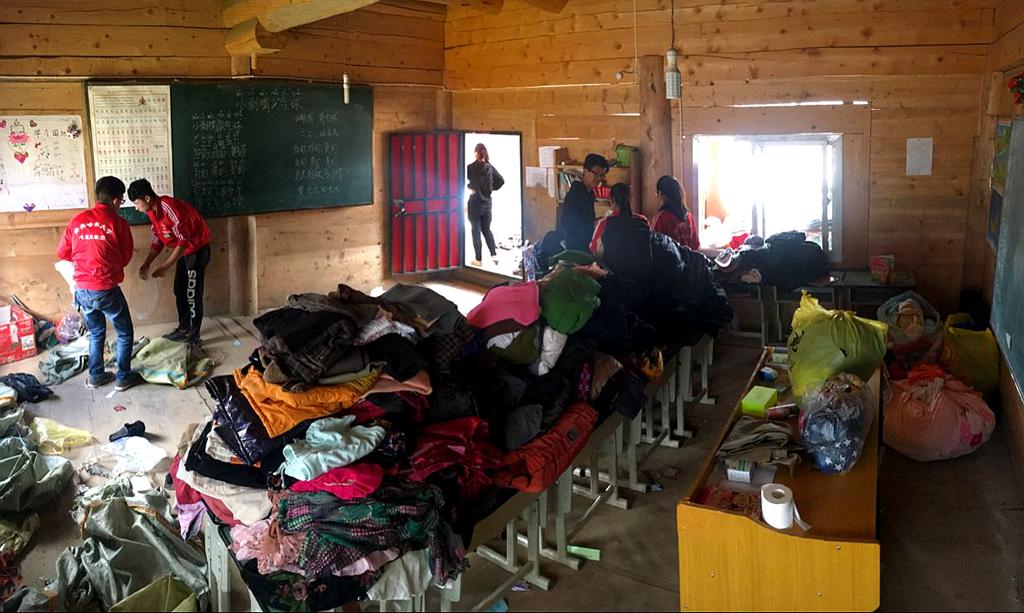 进入教室时,虽然已经做好心理准备,但还是被眼前的景象惊讶到了。狭小的教室里坐满了孩子,破旧的窗户透着风,即使在屋内,也会被凛冽的寒风吹得瑟瑟发抖。学校里没有宿舍,心翼支教团的同学们就把幼儿班的桌子拼起来,在桌子上睡了三个多星期。