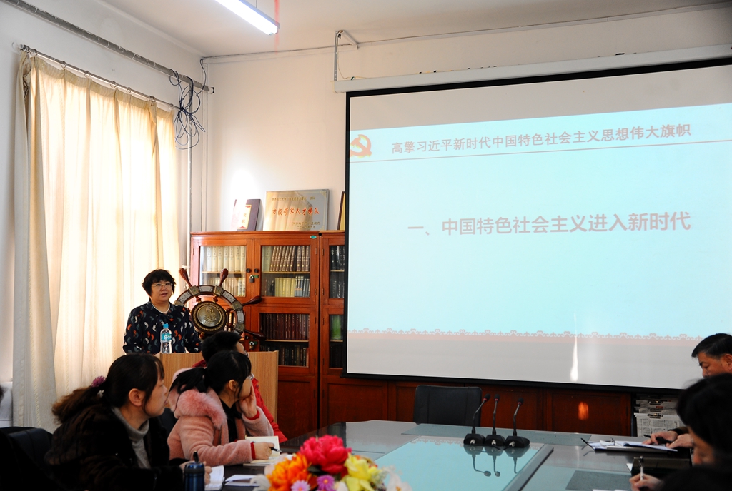 在中区马克思主义学院会议室,校党的十九大精神宣讲团成员、党委宣传统战部部长、硕士生导师王晓梅教授以《高擎习近平新时代中国特色社会主义思想伟大旗帜》为题,从如何理解中国特色社会主义进入新时代、怎样把握习近平新时代中国特色社会主义思想等重要内容,对党的十九大精神进行了系统、全面、深入的讲解。她指出,习近平新时代中国特色社会主义思想从理论和实践结合上系统回答了新时代坚持和发展什么样的中国特色社会主义、怎样坚持和发展中国特色社会主义,学习党的十九大报告,最重要的是要把习近平新时代中国特色社会主义思想学习好、领会好、贯彻好,这是党的十九大报告的灵魂。马克思主义学院全体教职工参加了宣讲活动。