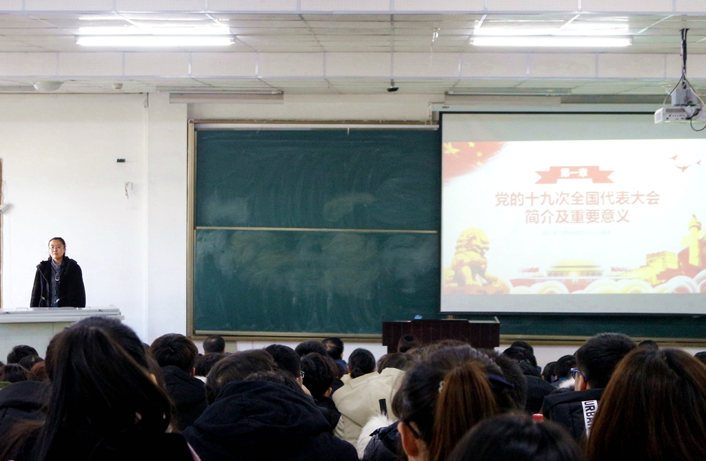 西区1教阶梯204教室,马克思主义学院马克思主义中国化教研部主任、副教授、硕士生导师庞晶以《习近平新时代中国特色社会主义思想引领新征程》为题,从习近平新时代中国特色社会主义思想、进入新时代历史方位的重大判断、新时代战略安排和新时代党的建设总要求等方面对党的十九大精神进行了多角度的深入解读。计算机与控制工程学院全体教职工、学生党员及入党积极分子参加了宣讲活动。
