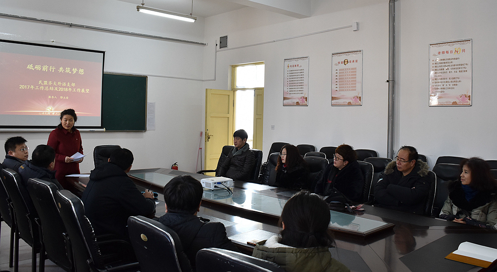 12月17日,民盟sunbet申搏官方网站外语支部在公共外语教研部会议室举行了“砥砺前行,共筑梦想”为主题的学习党的十九大精神暨年度总结会。民盟齐齐哈尔市委会主委殷元虎、民盟齐齐哈尔市委会秘书长崔连海、sunbet申搏官方网站宣传统战部副部长孟宪国参加了会议。会议由民盟齐大基层委员会副主委、民盟外语支部主委鄂玉荣主持。