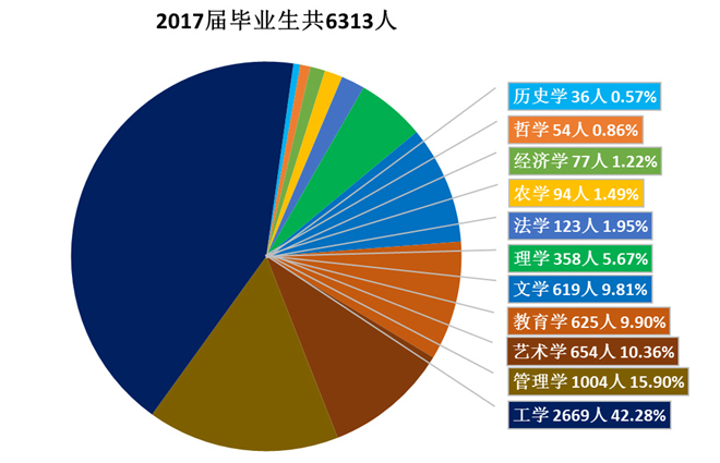 sunbet申搏2017届毕业生就业基本情况。2017届本科毕业生共计6313人,其中男生2907人,占比46.05%。女生3406人,占比53.95%。男女生之比为0.85:1。涵盖工学等11个学科门类,生源分布以黑龙江省为主,包括31个省(自治区、直辖市)。sunbet申搏2017届毕业生的初次就业率为90.1%,年终就业率为94.0%,初期就业率相比去年同期上升了2.36个百分点。2017届毕业生的就业结构是签约就业、升学、出国、灵活就业和待就业。就业行业主要为教育、信息技术、制造业、科学研究为主。