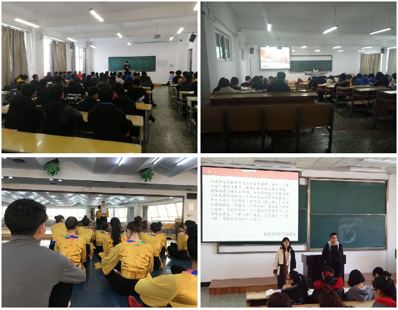 经济与管理学院团委和机电工程学院团委,利用课前五分钟,通过宣讲、主题演讲、微视频等丰富的形式,让同学们更好的学习党的十九大报告主要内容,更深入的理解领会党的十九大精神,一系列形式多样的宣传教育活动,激励着同学们为实现中华民族伟大复兴的中国梦接力奋斗。美术与艺术设计学院从学生党员中遴选出6名同学组成了十九大精神宣讲团,创新宣讲活动的载体,通过微信群、楼宇宣传机等平台开展“党建微课堂”活动,让十九大精神入耳、入脑、入心,使十九大精神在同学中落地生根。食品与生物工程学院团委积极发挥院学生习近平新时代中国特色社会主义思想研习会的示范引领作用,研习会的同学精心准备,认真备课,利用课前五分钟,着重为学院同学们宣传党的十九大提出来的一系列新的重大思想、重要观点、重要论断、重大举措,从而深化同学们对习近平新时代中国特色社会主义思想的理解与认识。哲学与法学学院团委、国际教育学院团委、文学与历史文化学院团委、音乐与舞蹈学院团委、通信与电子工程学院团委、材料科学与工程学院团委和轻工与纺织学院团委纷纷以班级团支部为单位,成立了以团支书为主讲人的十九大精神宣讲团,宣讲团成员带领同学们利用每节课的课前5分钟进行微党课学习,通过原原本本读报告原文,逐字逐句理解研读,同学们在学习中逐渐领会了十九大精神的核心要义和精髓实质,切实增强了广大团员青年听党话、跟党走的思想和行动自觉。