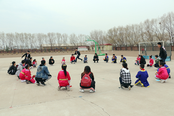 捐资助学仪式过后,志愿服务小分队的同学们与小学生们一同进行着丰富有趣的游戏,操场上不断传来师生们和孩子们喜悦的笑声。