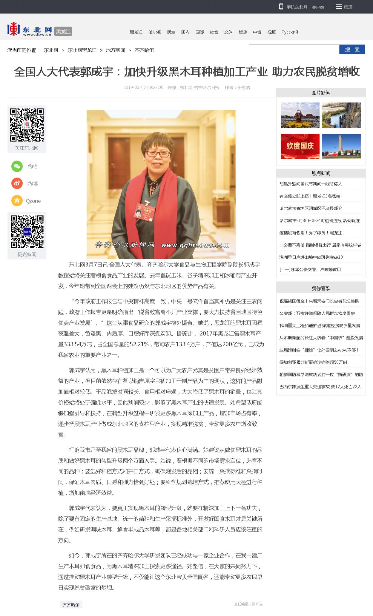【齐齐哈尔日报】郭成宇代表建议:加快升级黑木耳产业助力农民脱贫增收