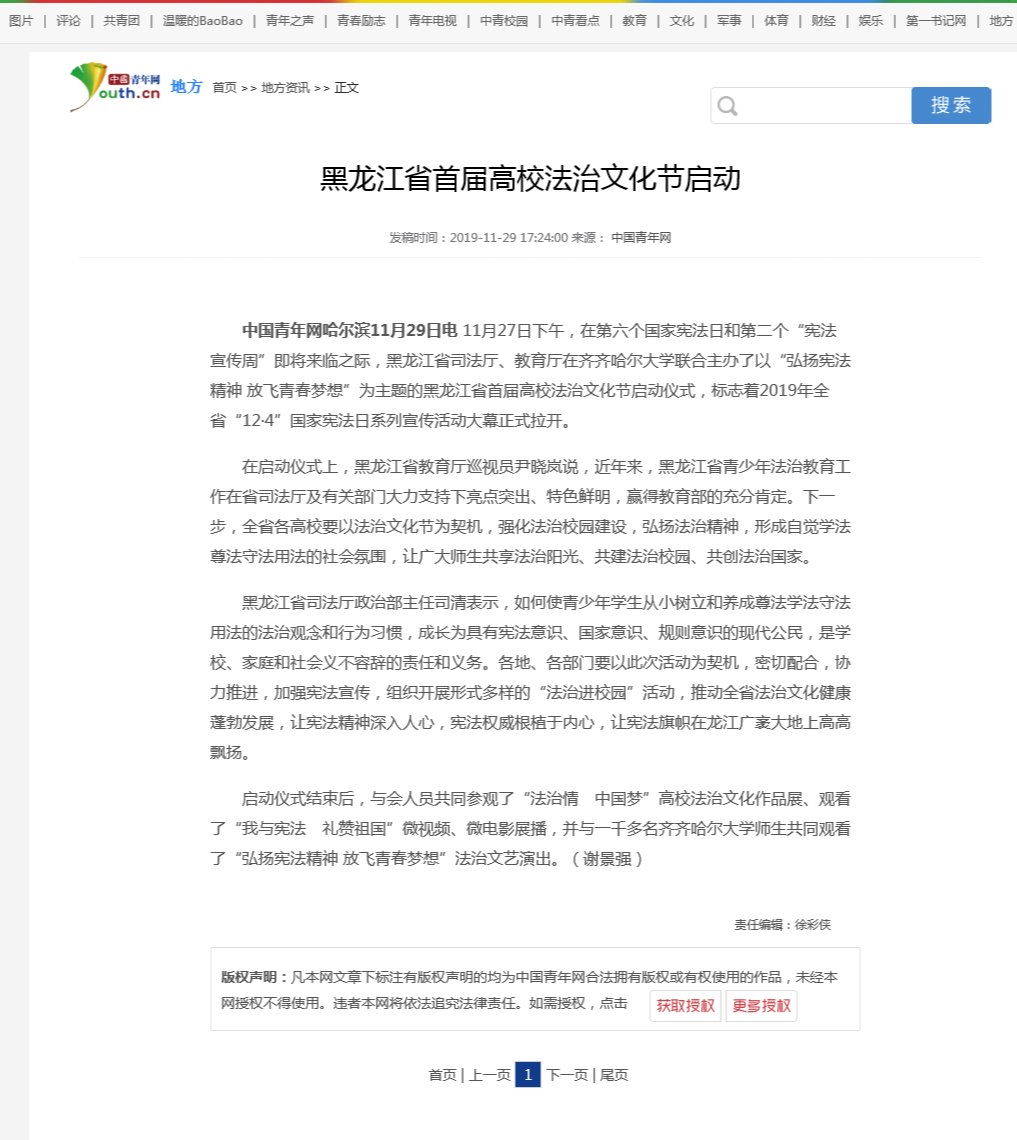 【中国青年网】黑龙江省首届高校法治文化节启动