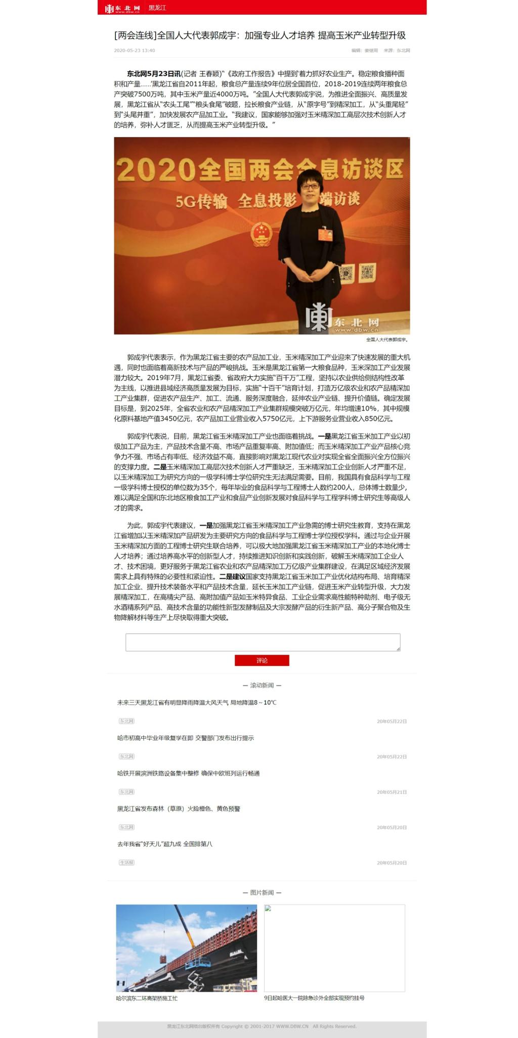 下一条:【人民网】郭成宇代表:加强高层次创新人才培养 推进玉米精深加工提档升级