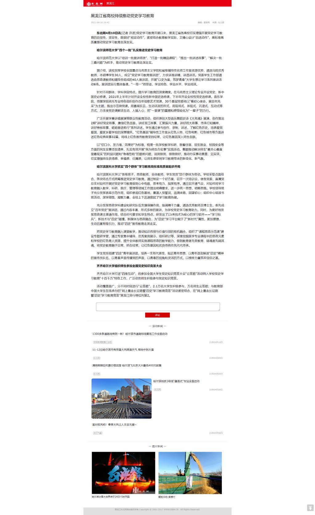 【东北网】黑龙江省高校持续推动党史学习教育