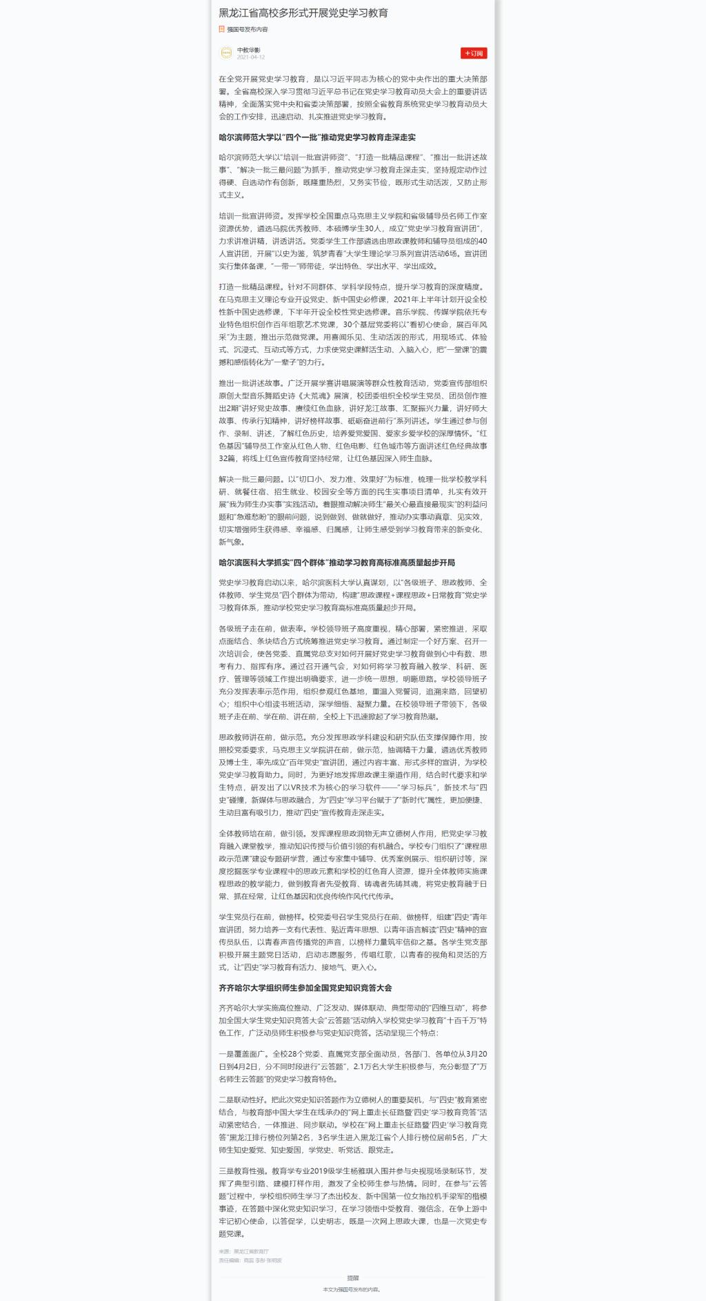 【人民日报】黑龙江省高校多形式开展党史学习教育