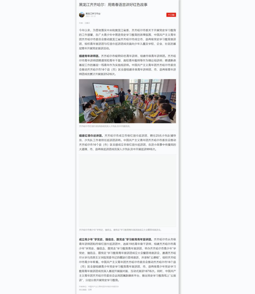 【学习强国平台】黑龙江齐齐哈尔:用青春语言讲好红色故事
