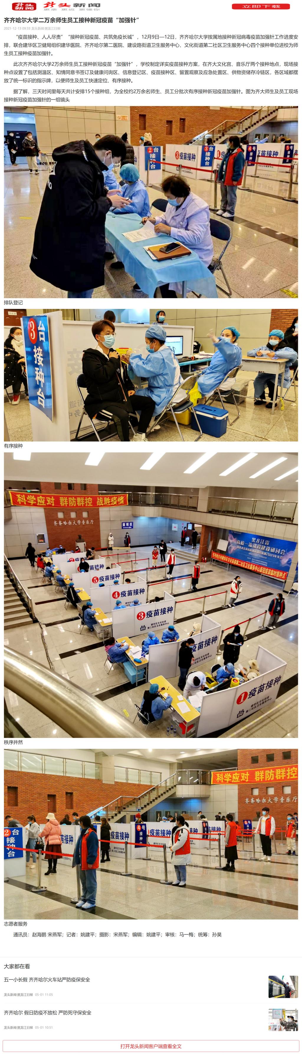 【鹤城晚报】齐大师生员工接种新冠疫苗加强针