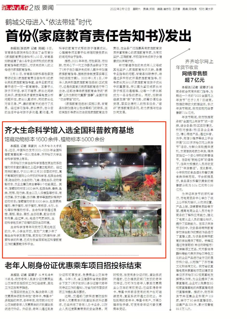 下一条:【齐齐哈尔日报】sunbet申搏官方网站生命科学馆入选全国科普教育基地