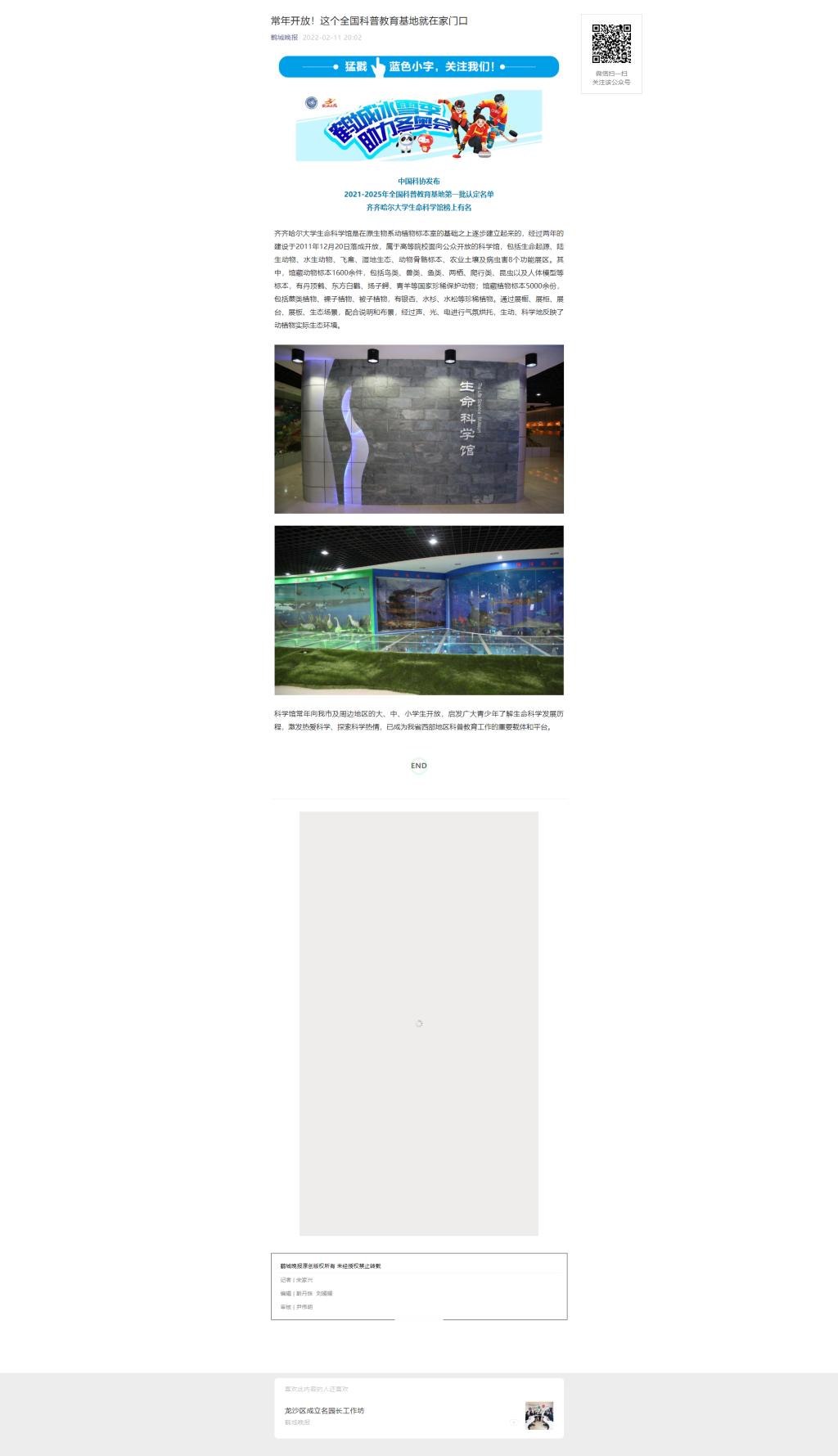 【鹤城晚报】齐大生命科学馆入选全国科普教育基地