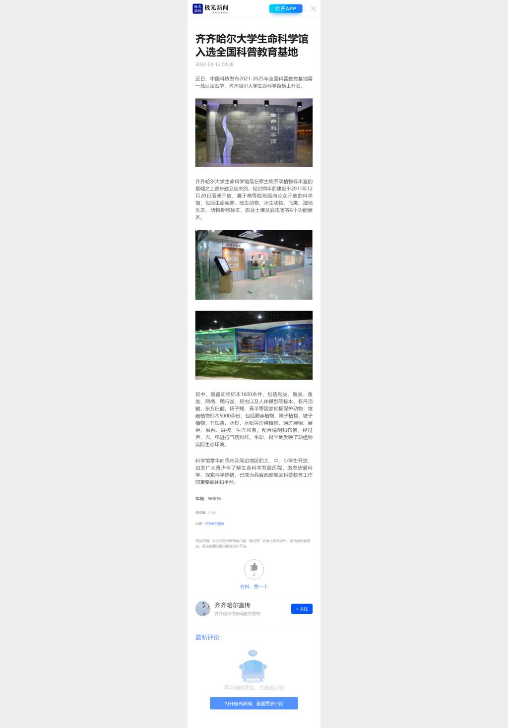 【极光新闻】sunbet申搏官方网站生命科学馆入选全国科普教育基地