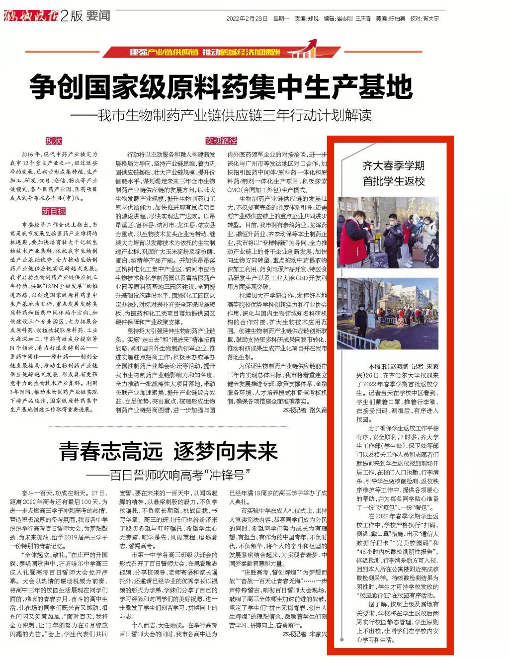 【齐齐哈尔日报】sunbet申搏官方网站春季学期首批学生返校