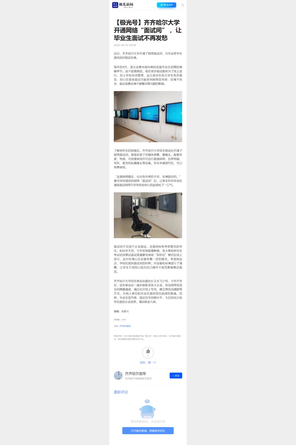 上一条:【鹤城晚报】给力!开通网络“面试间”,齐大精准服务毕业生