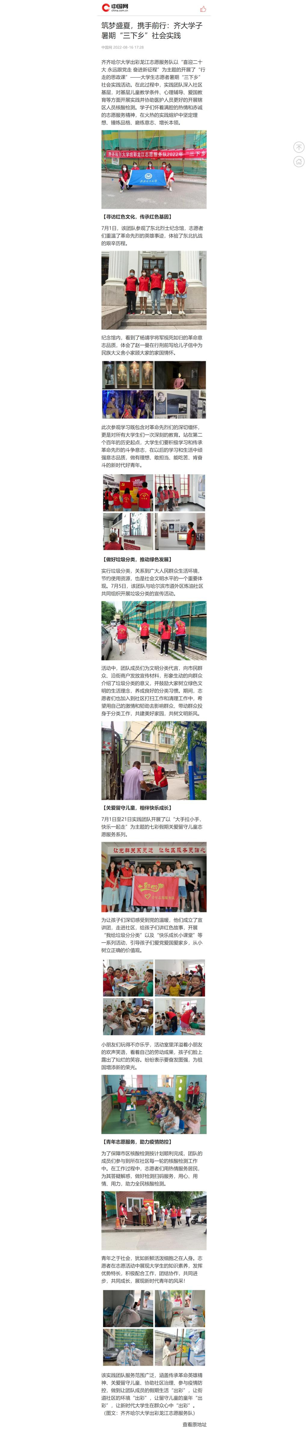 上一条:【中国网物联】筑梦盛夏,携手前行:齐大学子暑期“三下乡”社会实践