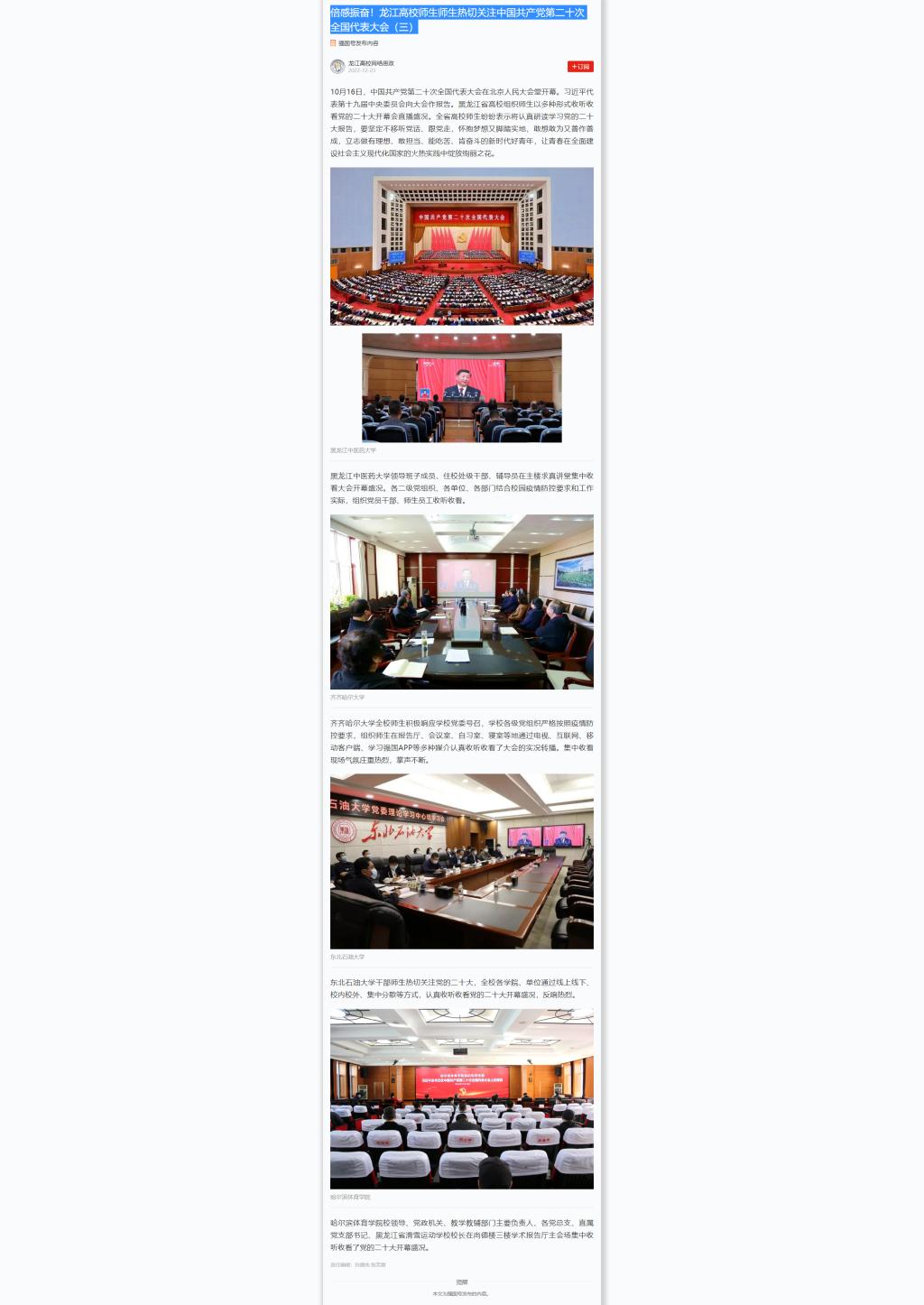 上一条:【学习强国】龙江高校火热开展学习宣传贯彻习近平总书记重要讲话精神官微“@大接龙”活动
