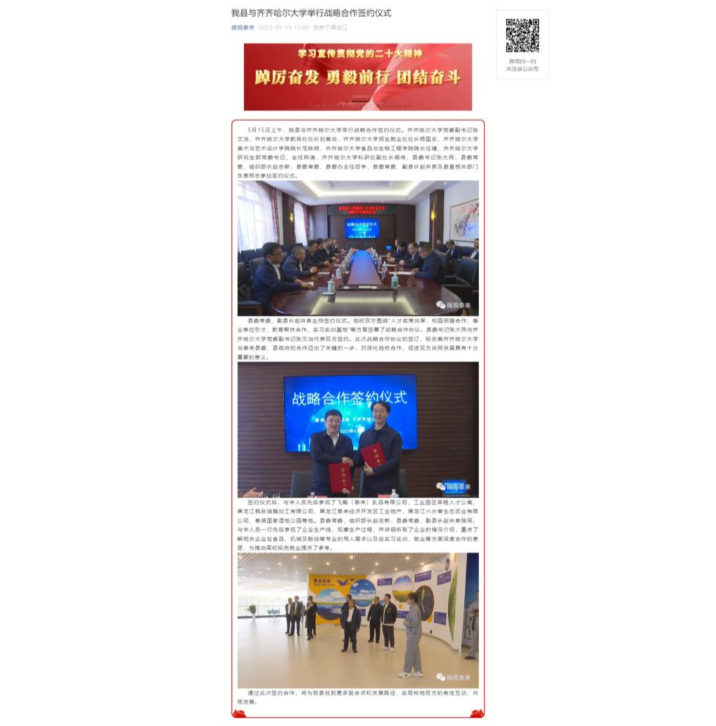 【微观泰来】我县与sunbet申搏官方网站举行战略合作签约仪式