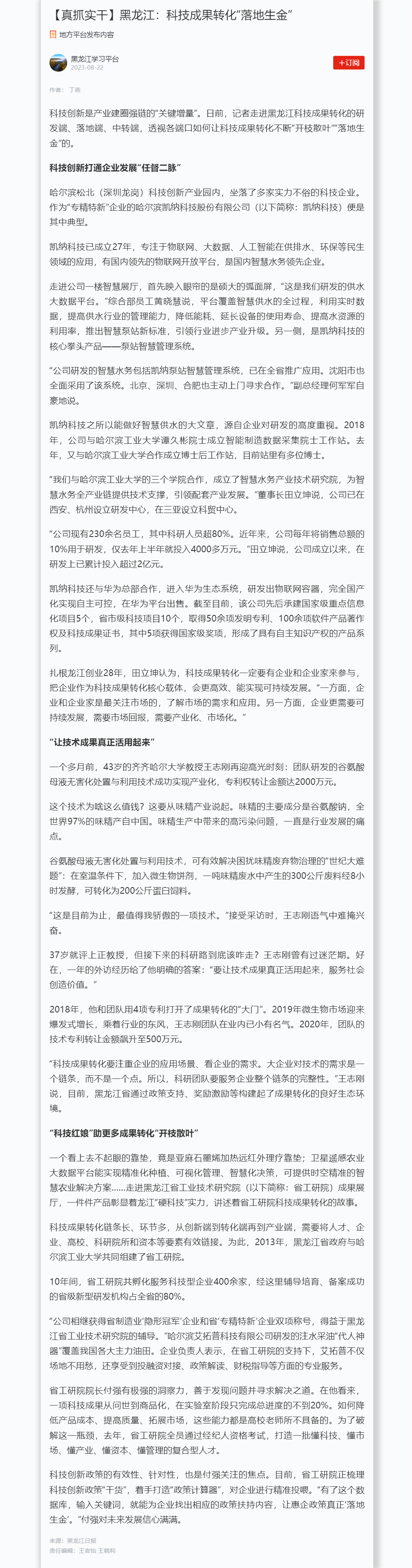 【黑龙江新闻网】龙江科技成果转化“落地生金”