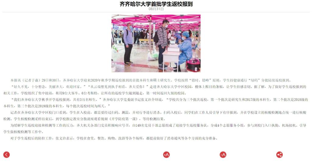 【鹤城晚报】齐大2020年秋季学期首批学生返校