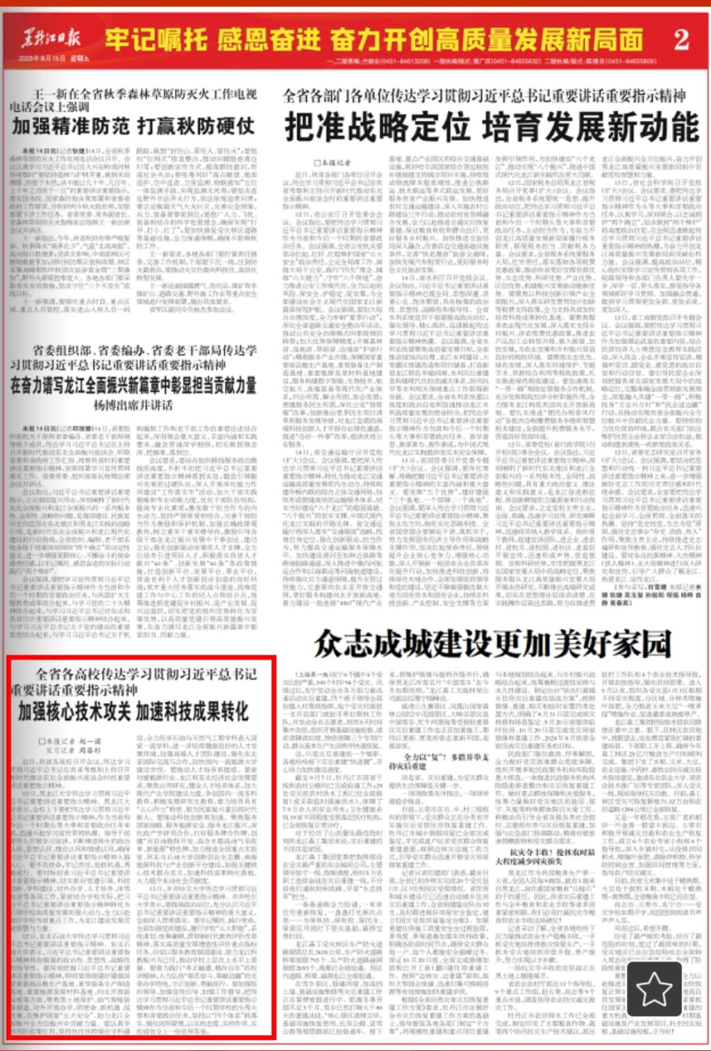 【黑龙江日报】全省各高校传达学习贯制习近平总书记重要讲话重要指示精神 加强核心技术攻关加速科技成果转化