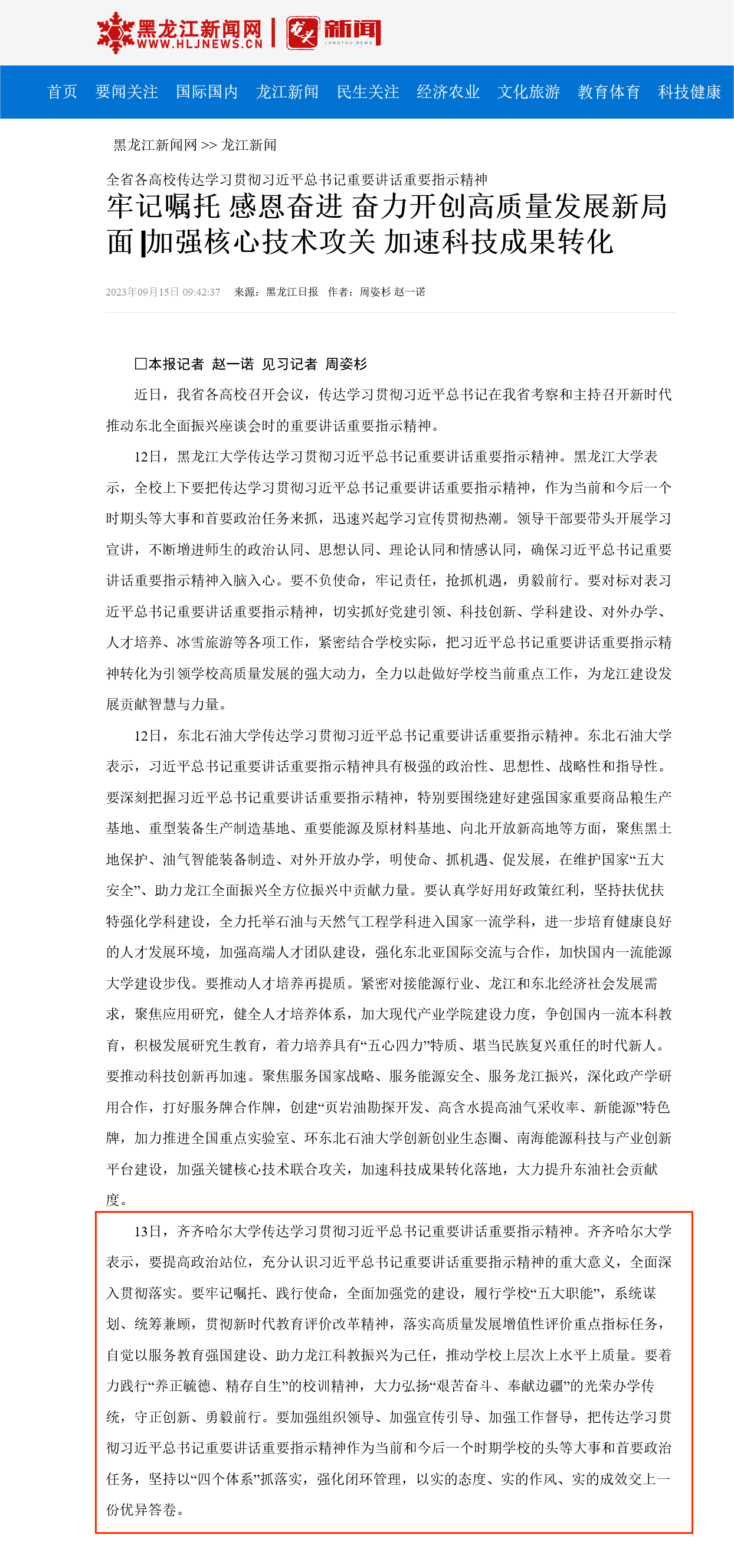 【黑龙江新闻网】牢记嘱托感恩奋进奋力开创高质量发展新局面 ▏加强核心技术攻关 加速科技成果转化