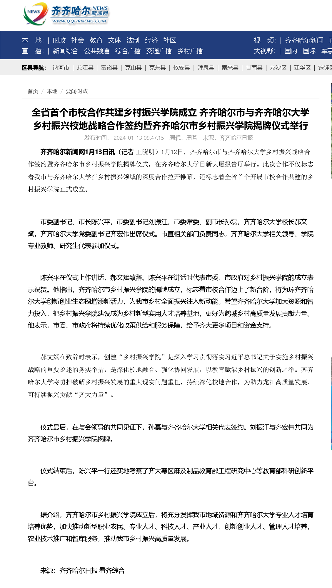 下一条:【黑龙江新闻网】乡村振兴校地战略合作签约仪式举行