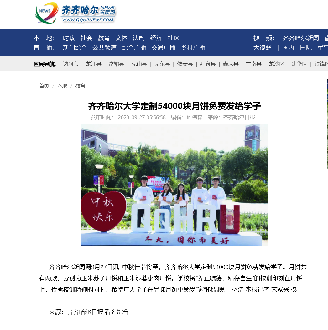 【齐齐哈尔新闻网】sunbet申搏官方网站定制54000块月饼免费发给学子