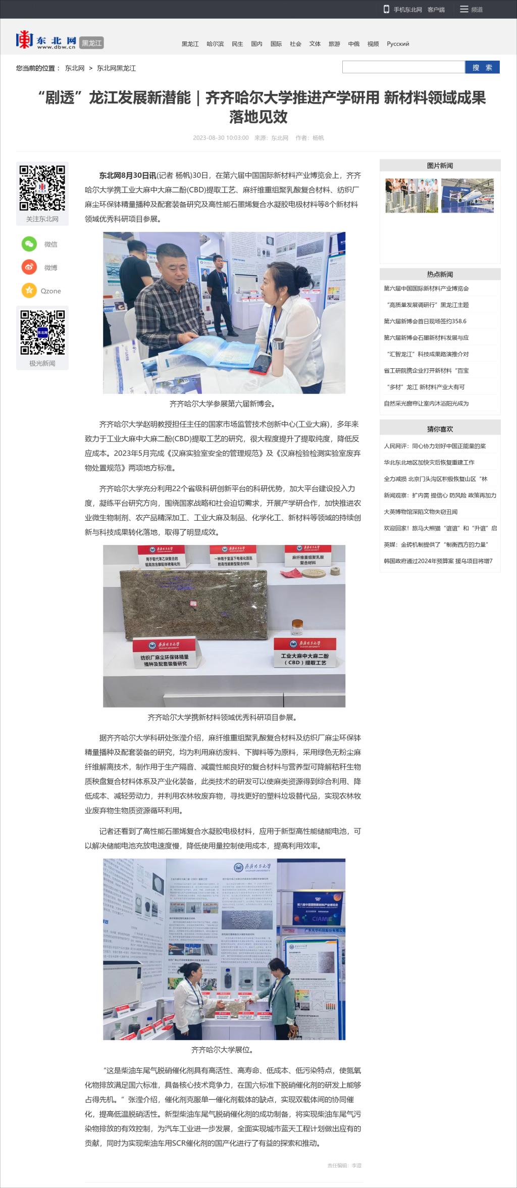 【东北网】“剧透”龙江发展新潜能|sunbet申搏官方网站推进产学研用 新材料领域成果落地见效