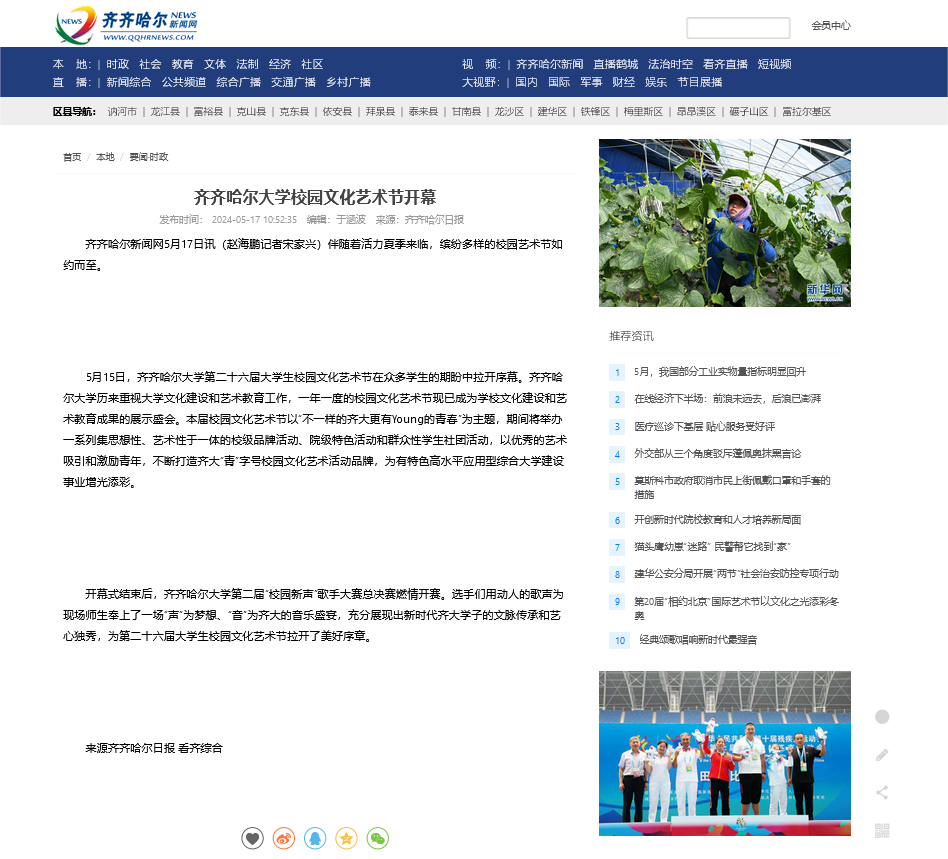 【齐齐哈尔日报】sunbet申搏官方网站校园文化艺术节开幕