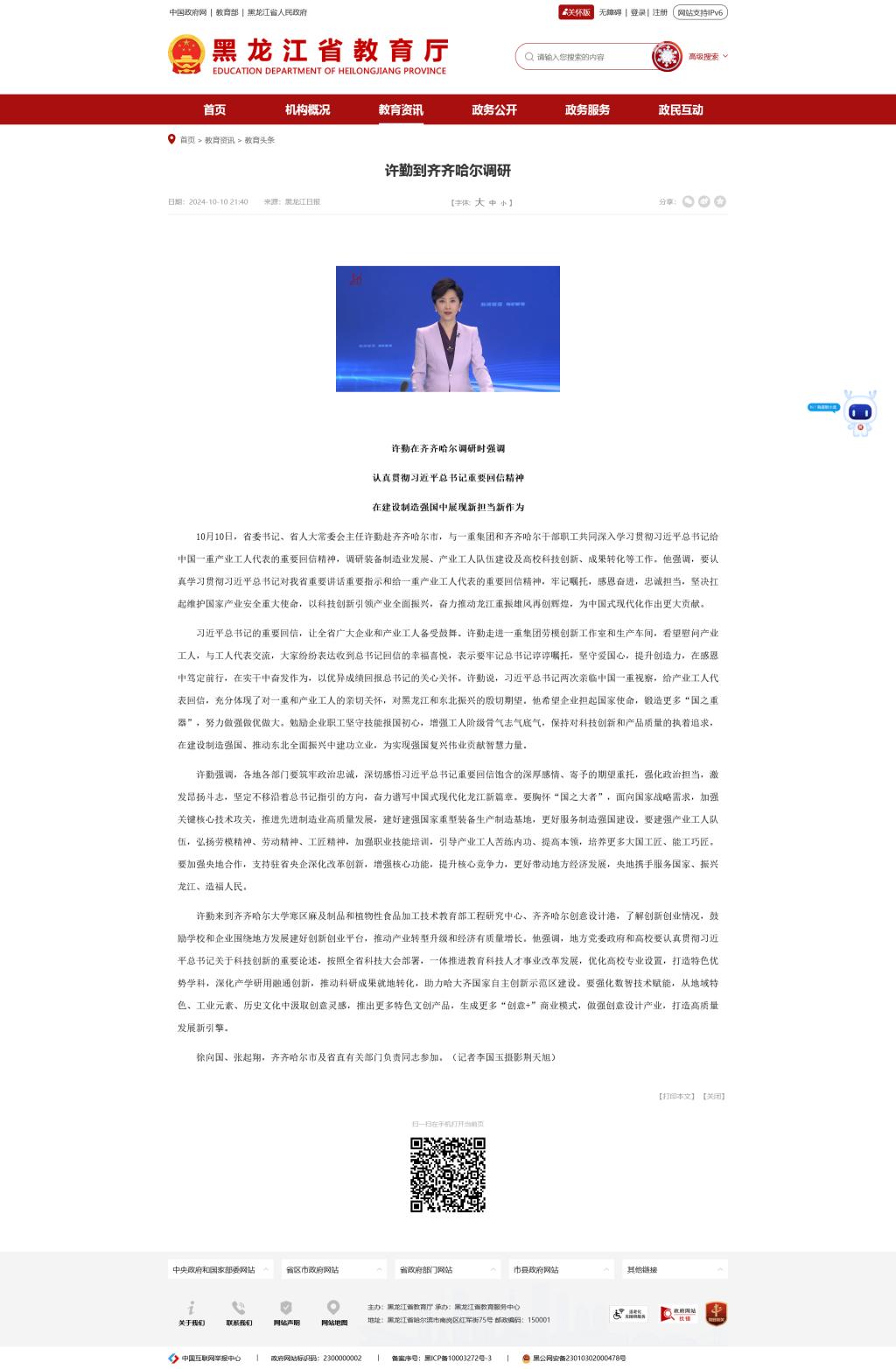 【黑龙江省人民政府】许勤到齐齐哈尔调研