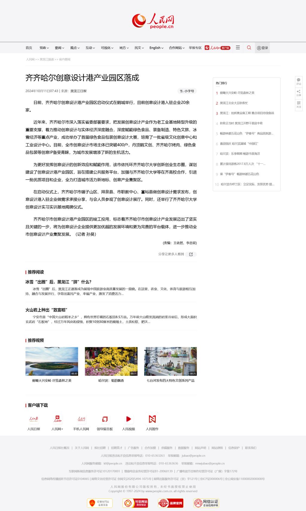 【人民网】齐齐哈尔创意设计港产业园区落成