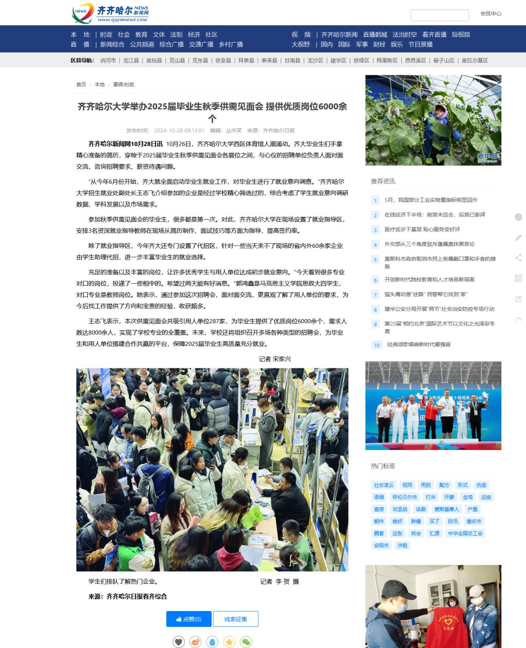 【齐齐哈尔新闻】sunbet申搏官方网站举办2025届毕业生秋季供需见面会提供优质岗位6000余个
