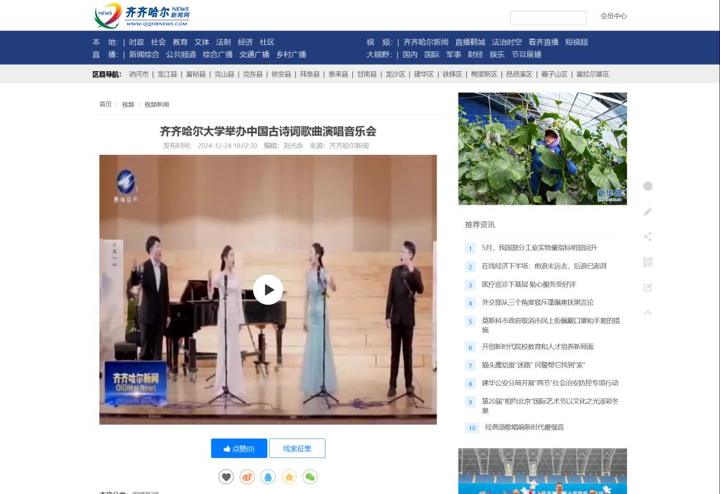 【齐齐哈尔新闻网】sunbet申搏官方网站举办中国古诗词歌曲演唱音乐会