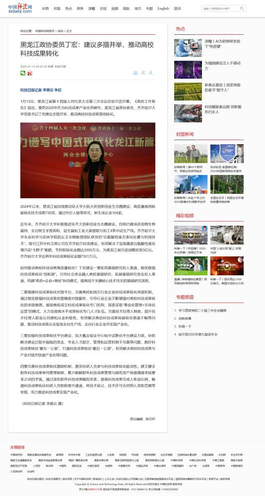 上一条:【中国科技网】黑龙江开启科技成果产业化突破年,代表委员建言献策如何破题