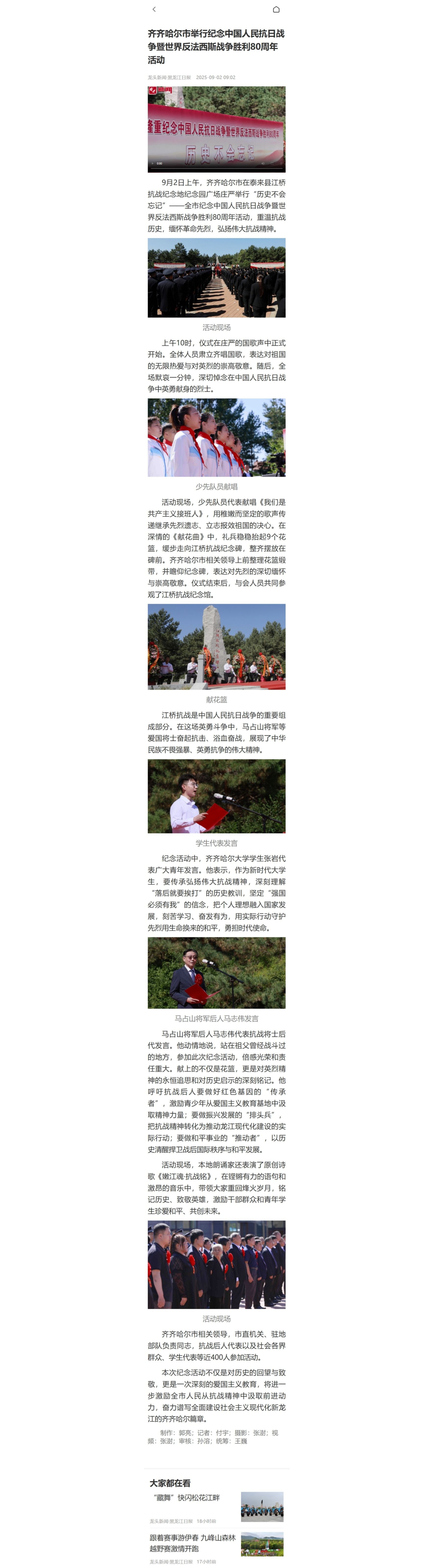 上一条:【黑龙江省教育厅】黑龙江省教育系统干部师生对中国人民抗日战争暨世界反法西斯战争胜利80周年纪念活动反响热烈