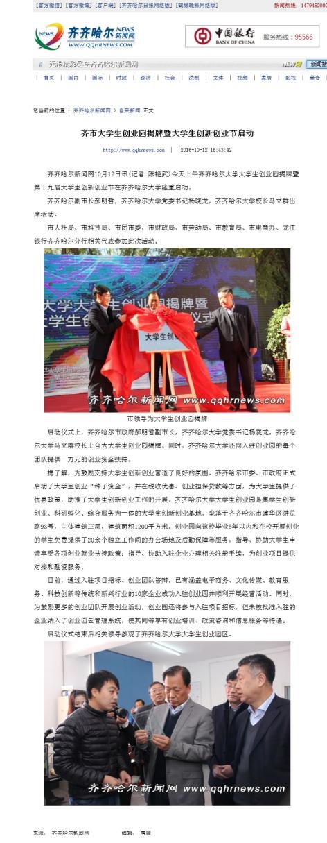 齐齐哈尔新闻网:齐市大学生创业园揭牌暨大学生创新创业节启动