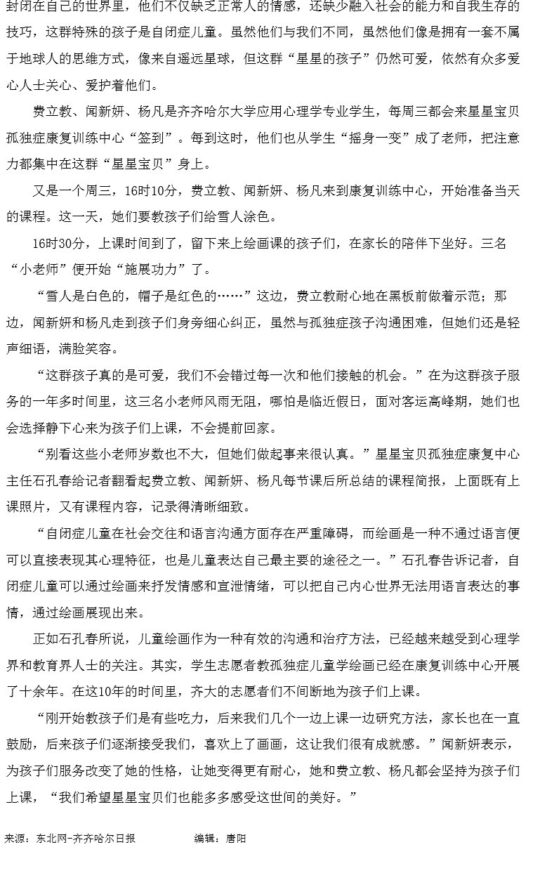 【齐齐哈尔日报】“星星的孩子”感受世间的美好