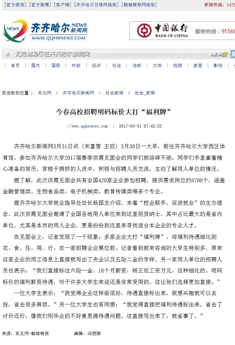 【鹤城晚报】今春高校招聘明码标价大打“福利牌”