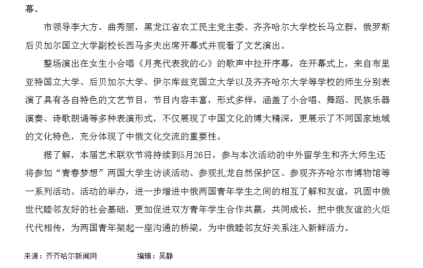 【齐齐哈尔新闻网】sunbet申搏官方网站第八届中俄大学生艺术联欢节开幕