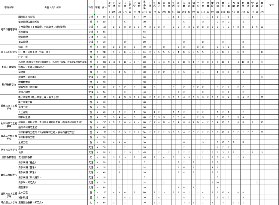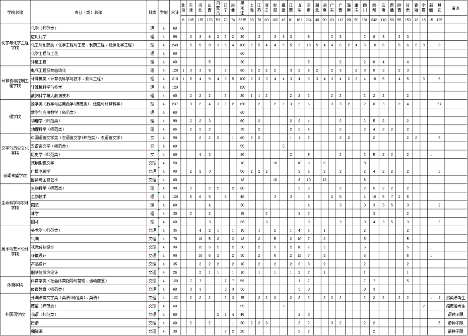 sunbet申搏官方网站2020年分省分专业招生来源计划一览表