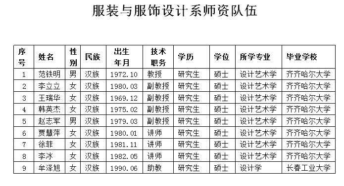 服装与服饰设计系师资队伍