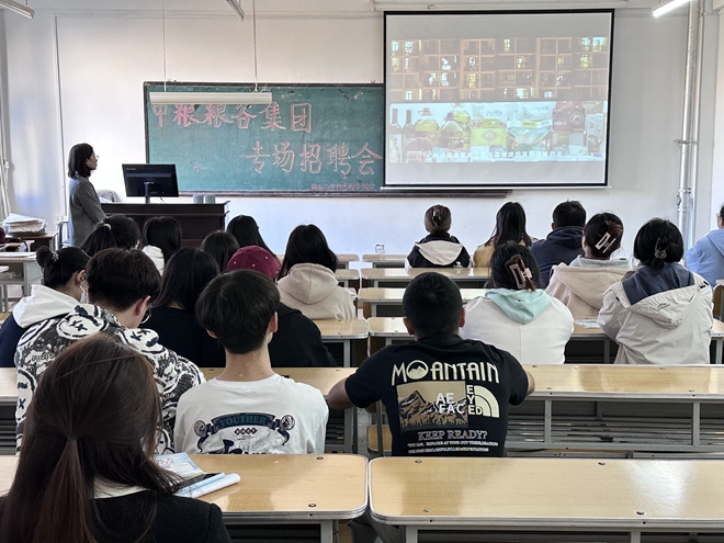 为深入实施就业优先战略,让我院应届生了解就业行情,明确就业的信心,充分发挥校园招聘主渠道作用。我院于2023年10月26日下午2点30分在延德楼330多媒体教室举办中粮粮谷集团专场招聘会。本次活动由中粮粮谷公司工作人员主讲,我院部分20级应届生参加此次活动。